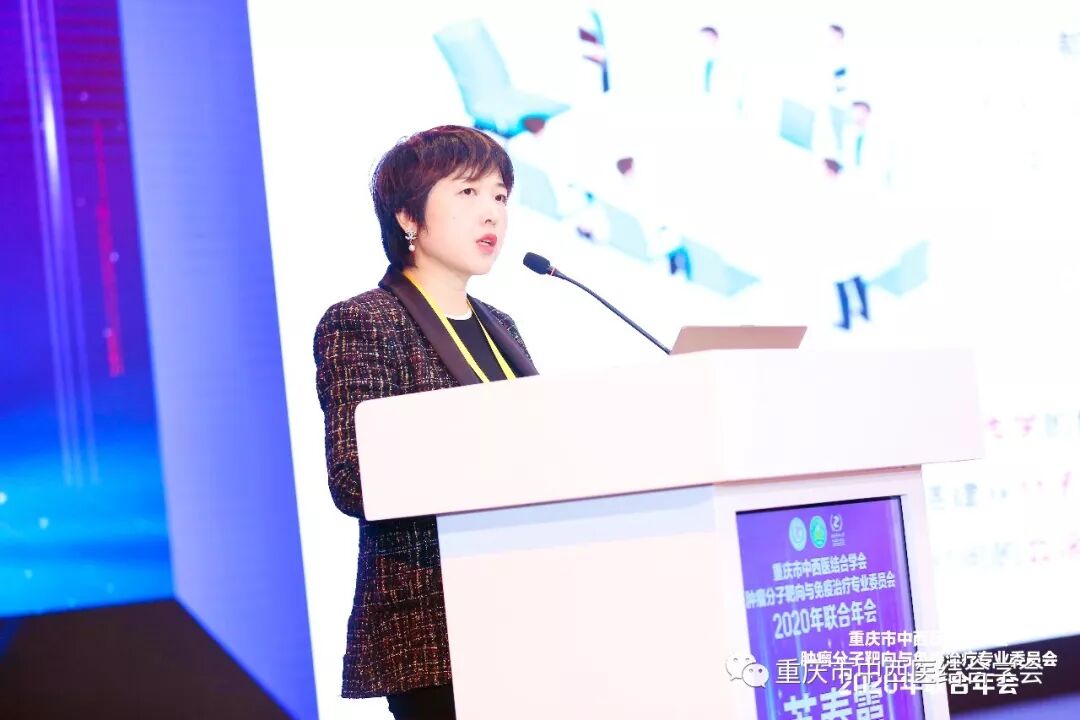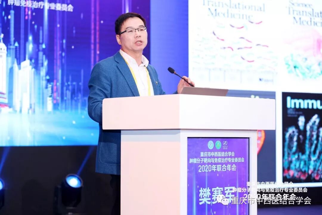 肿瘤免疫治疗专委会主任委员孙建国教授介绍,肿瘤分子靶向治疗通过靶向药物(又称“生物导弹”)进入体内特异地选择致癌驱动基因相结合发生作用,诱导肿瘤细胞死亡,而不波及正常组织细胞;肿瘤免疫治疗又被业内称为肿瘤治疗史上的“第三次革命”,其适应范围广泛,可用于广泛转移晚期肿瘤患者的治疗,特别是对于标准疗法失败的晚期肿瘤患者依然取得了较好的效果;部分患者预后好,响应免疫治疗的患者有较大机会能高质量长期存活;同时免疫治疗具有显著的广谱性,可以治疗多种不同的肿瘤,使异病同治成为现实。孙建国教授指出,经过多年的临床实践总结,无论是传统的手术、放疗、化疗,还是靶向治疗、免疫治疗等新手段,肿瘤的综合治疗理念已在临床医生中达成广泛共识。根据肿瘤的不同分期分型制定不同的肿瘤综合治疗方案,结合病情分主次,联合一种或几种疗法,最大限度的提高缓解率,是当前治疗肿瘤的主流方式及未来发展方向!本次会议是重庆市中西医结合学会分子靶向治疗专委会与肿瘤免疫治疗专委会第二次联手联合举办学术年会,丰富的报告内容使人目不暇接,精彩的专家点评让参会人员受益匪浅,同时对肿瘤靶向治疗与免疫治疗的临床应用有了更深刻的理解与认识。本次会议提供了一个多学科,跨领域的交流机会,分享免疫治疗最新的前沿进展,在精准医学时代下,提高综合诊治水平,为推动免疫治疗规范化个体化应用进程、增强医疗服务水平做出了贡献。本次重庆市中西医结合学会肿瘤分子靶向与免疫治疗专业委员会2020年联合年会在全体与会嘉宾高涨的学习热情中圆满落幕!