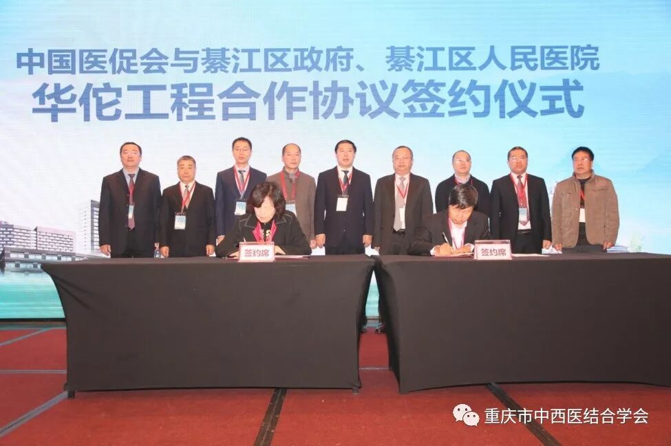 中国医促会华佗工程办公室陈杰主任与綦江区人民人民医院敬国敏院长共同签署华佗工程学科基地合作协议并举行了授牌仪式。