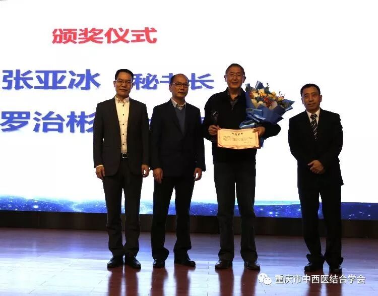 重庆市中西医结合学会是1984年成立的中、西医结合医学科学技术工作者的学术性群众团体,学会下设肿瘤、血液、妇产、老年等70余个学术专业委员会,遍及全市二级以上各医疗单位。肿瘤专委会成立于2001年,首任主任委员是重庆市中西医结合学会肿瘤专业委员会的创始人之一黄凤鸣教授。为表彰黄凤鸣教授在我市肿瘤学科建设、人才培养、学术交流、科普宣传勤勉敬业的无私奉献,以及在重庆市中西医结合肿瘤防治事业的卓越成就,经组织工作委员会同意,大会授予黄凤鸣教授“重庆市中西医结合学会终身成就奖”。