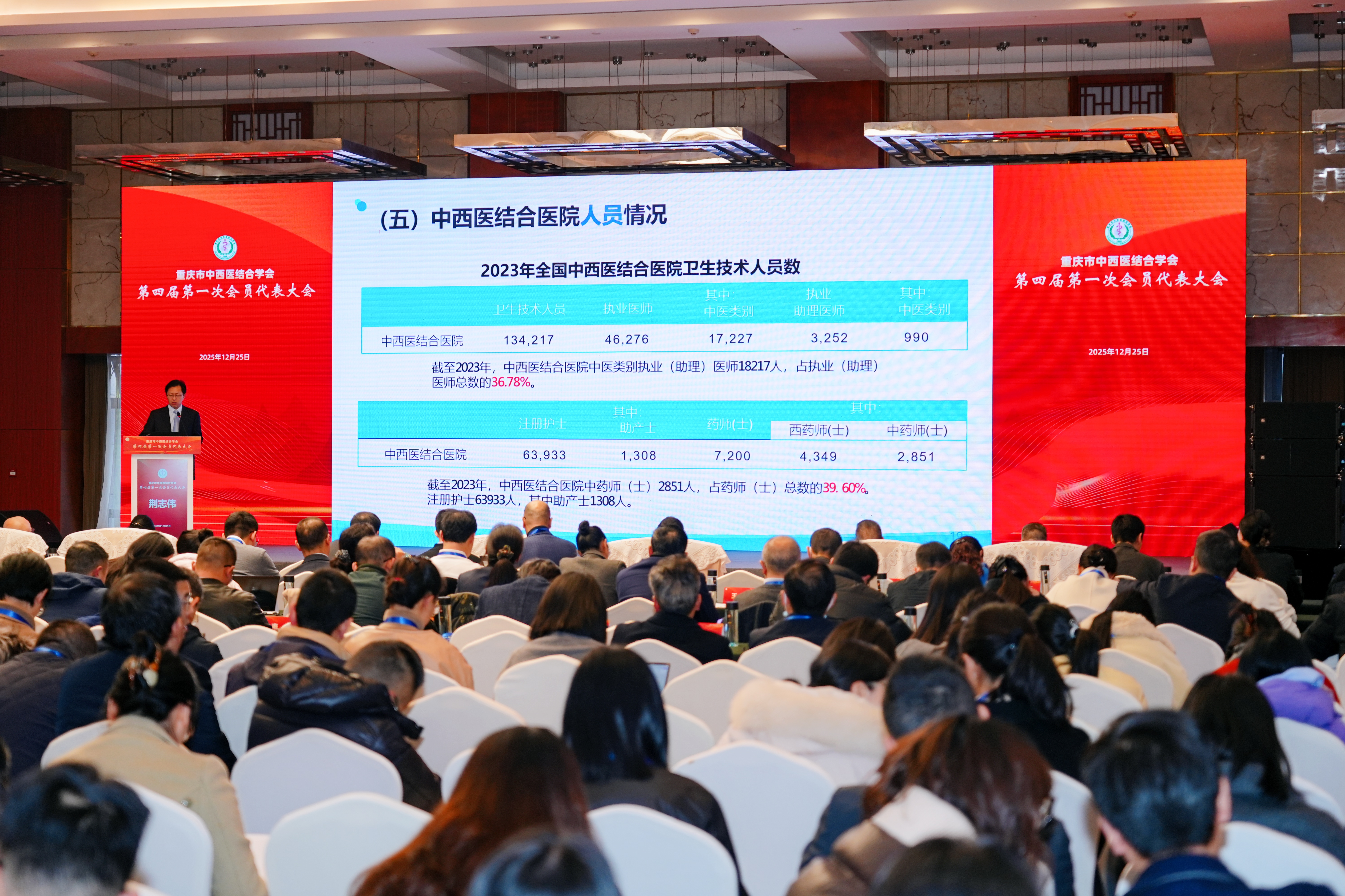 2025年12月25日,重庆市中西医结合学会第四届第一次会员代表大会成功召开。重庆市卫生健康委员会党委委员、副主任,重庆市中医药管理局局长赵勇,重庆市科学技术协会党组成员、副主席戈帆,重庆市民政局社会组织管理局二级调研员徐剑清出席开幕式并讲话。重庆市中医院党委书记唐玲主持大会开幕式。