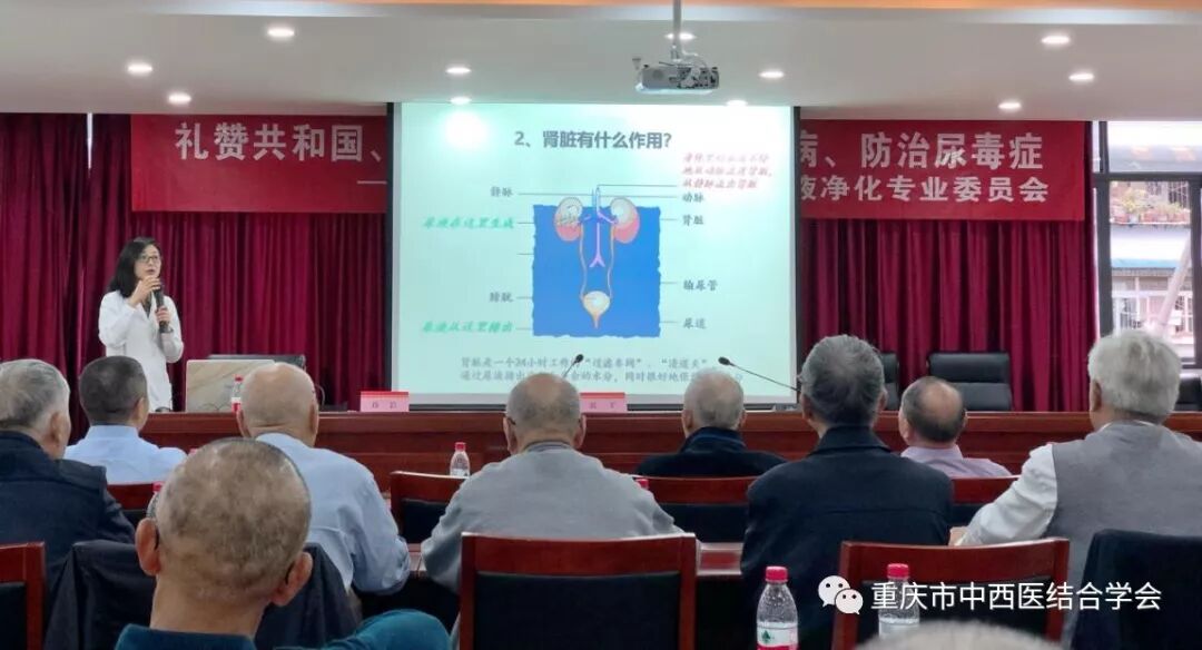 为大力普及肾脏病科学知识,传播健康生活方式,促进科学普及与科技创新协同发展,由重庆市中西医结合学会血液净化专业委员会、重庆医科大学附属第三医院和重庆医科大学附属第一医院承办的以“礼赞中国、智慧新生活、关注肾脏病、防治尿毒症”为主题的大型科普义诊活动于9月18日在渝北区离退休干部活动中心举办。本次活动由血液净化专委会主任委员、重庆医科大学附属第三医院泌尿疾病中心肾内科杨聚荣主任牵头,协同重医附一院杜晓刚副主任、陆军医学特色中心李开龙副主任、重庆医科大学附属第三医院肾内科孙岩教授和营养科陈曦医师等组成的义诊团队用实际行动,向建国70周年献礼。
