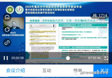 2020年重庆市中西医结合学会营养专业委员会年会暨中西医结合营养科建设与管理标准化研修班暨新冠肺炎的食疗防治论坛顺利召开