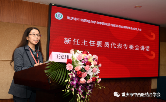 新任主任委员王建伟代表专委会发表了讲话,感谢专委会及所有成员的信任,王建伟教授表示,今后我们将积极秉承重庆市中西医结合学会中西医结合基础与应用专委会的办会宗旨,履行主任委员的职责,不遗余力地扩大学会的影响,扩大学会与其他同行学会的对外交流,扩大会员之间的内部交流,共同提升我市中西医结合工作的水平。