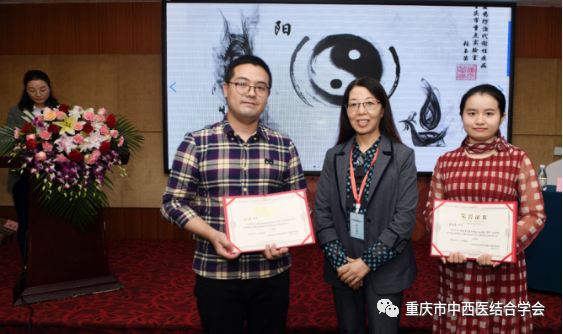 会议第三部分是中医药防治代谢性疾病重庆市重点实验室2020年度科技活动周优秀科普作品的颁奖活动,由重庆医科大学中医药学院姚玲高级实验师主持,对优秀科普作品进行了展示,并邀请中医药学院副院长王建伟教授、罗先钦研究员和李学智教授为优秀科普作品获奖者颁发了荣誉证书,最后对获奖的同学们表示祝贺并合影留念。