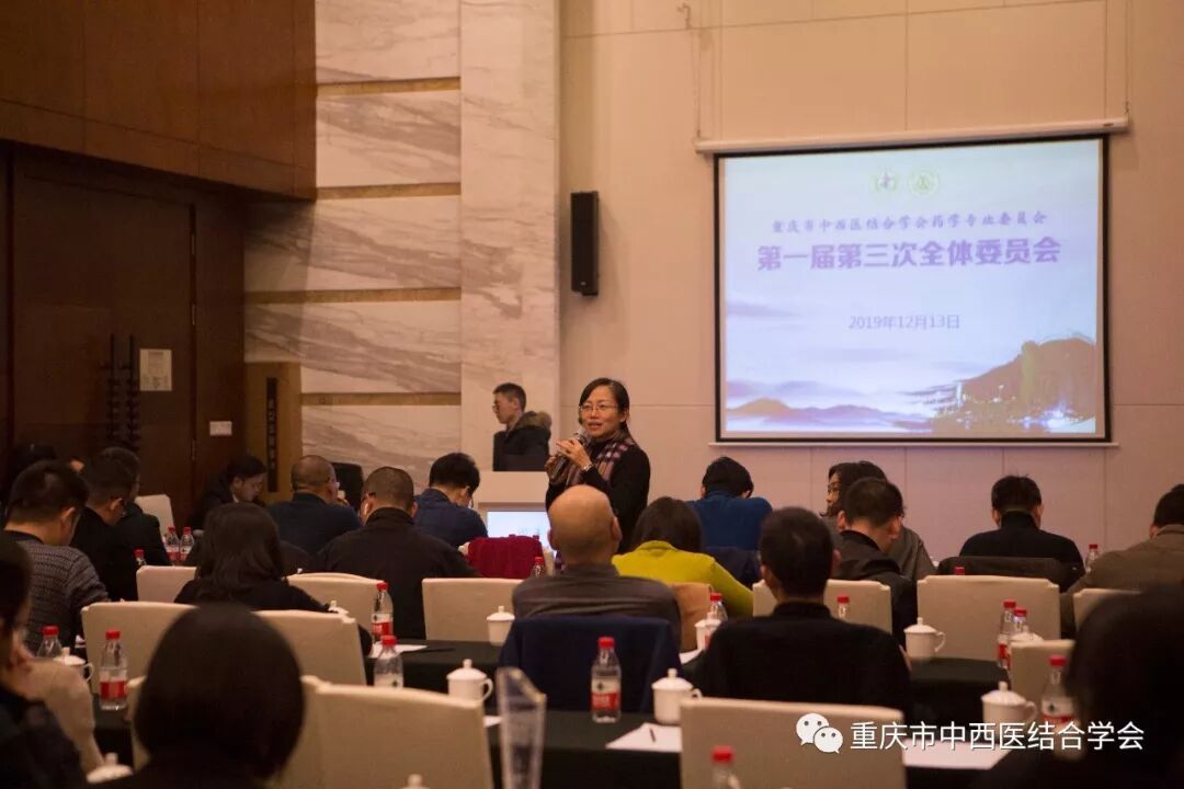 随后举行重庆市中西医结合学会药学专业委员会第一届第三次全体委员会,委员会由药学专委会主任委员张蓉主任主持。会议特邀请了首都医科大学宣武医院崔晓辉副教授就《药学创新服务思维培养》进行了精彩的学术报告,重庆市儿童医院药学部贾运涛主任就《基层药学服务实践》进行了专题报告,专题报告由专委会常务委员郑晓媛主持。其后,常务委员兼秘书黄景彬代表专委会汇报了“2019年药学专委会工作总结及2020年工作计划”,与会委员对2020年工作计划展开了广泛讨论。 主任委员张蓉主持药学专委会第一届第三次全体委员会