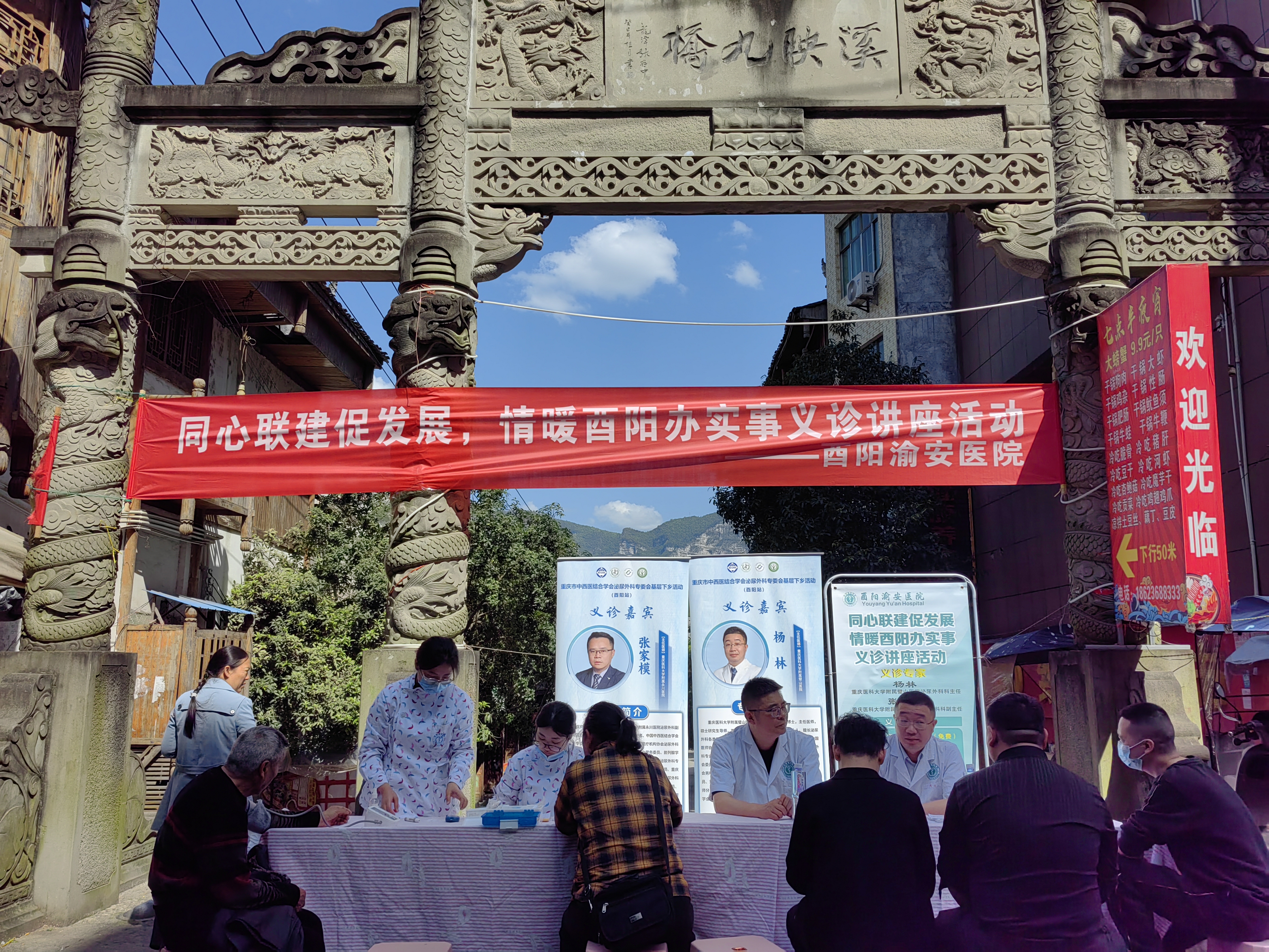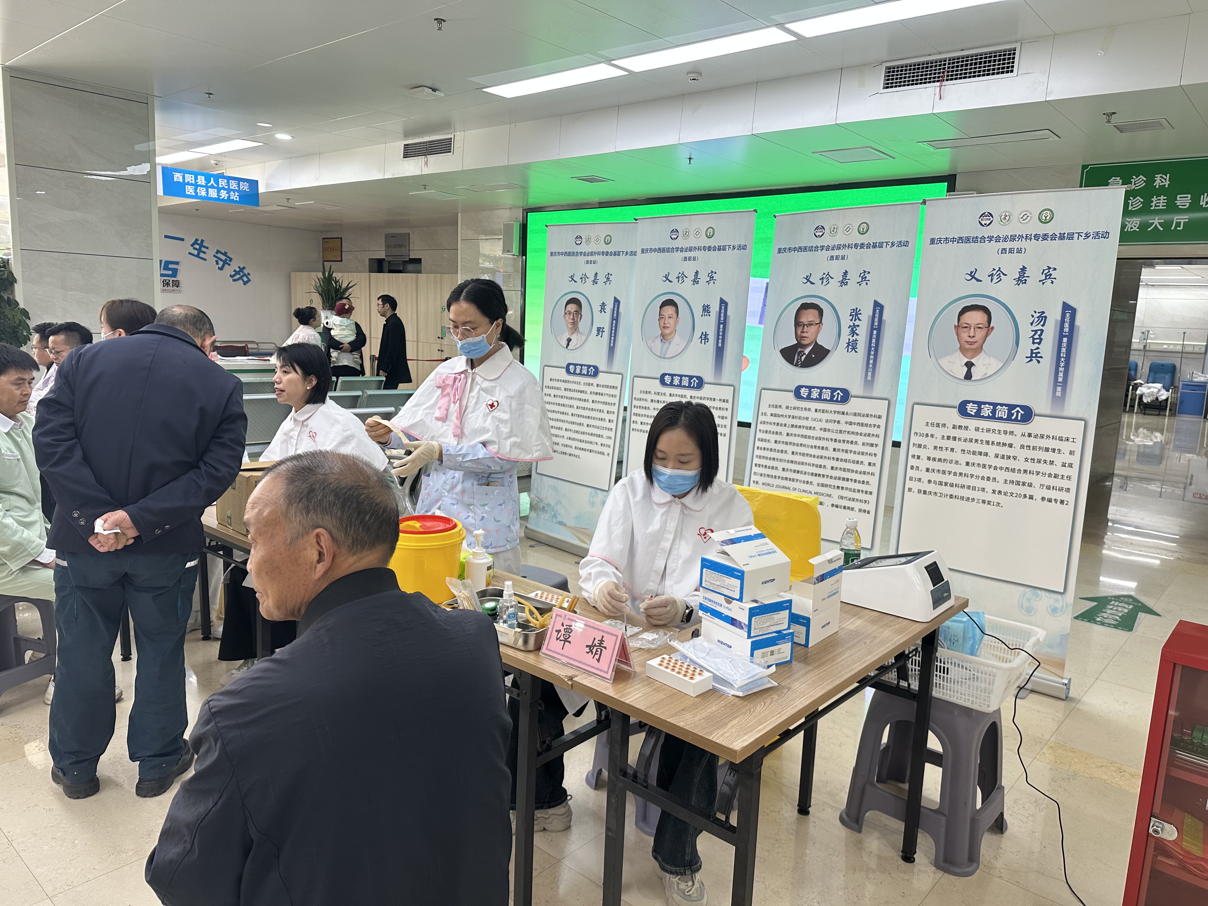 本次活动同步开展多场公益义诊,让基层群众在家门口享受到市级专家的诊疗服务。重庆市第十三人民医院大外科主任袁野教授、重庆市中医院泌尿外科科主任熊伟教授、重庆医科大学附属永川医院泌尿外科科副主任张家模教授等医疗专家在酉阳县人民医院义诊,为群众提供泌尿外科专业诊疗咨询;医护团队同步开展血压、血糖测量及前列腺抗原筛查等便民服务,细致解答群众健康疑问。